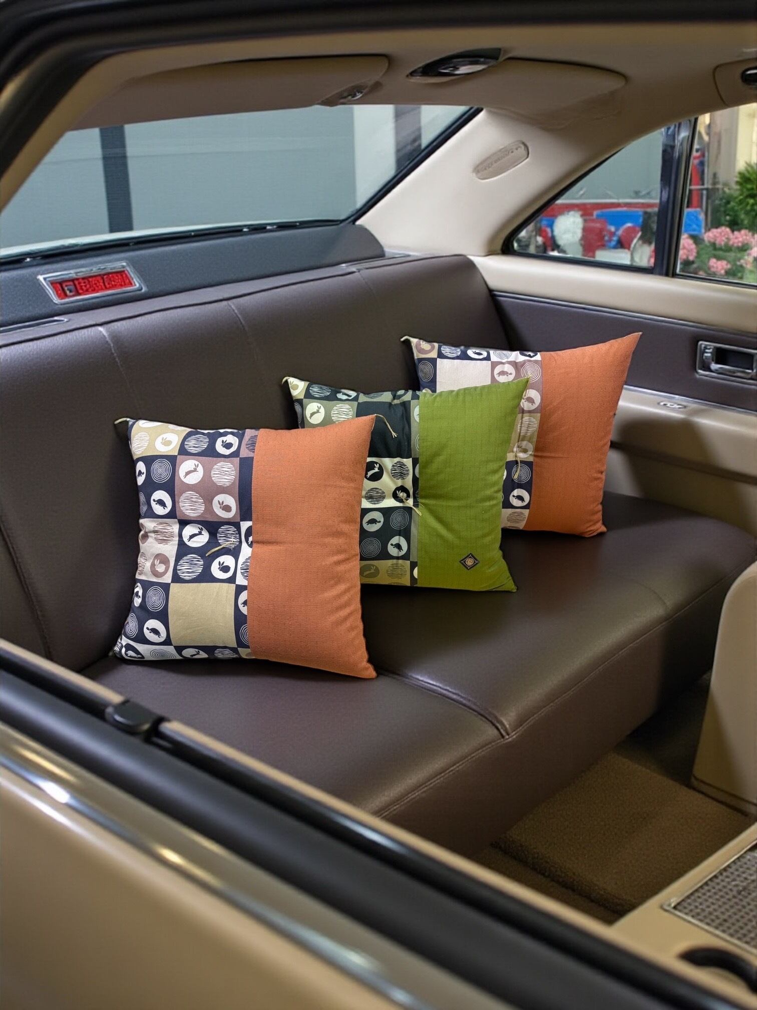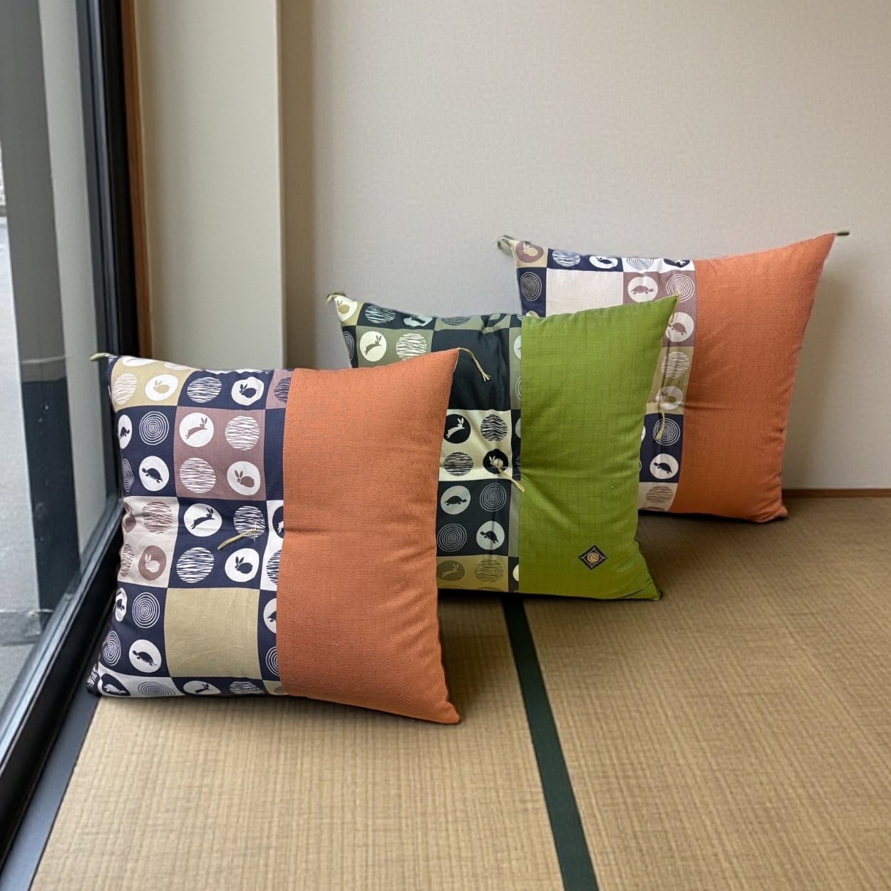 市松うさぎ ブラウン(レンガ色)とモスグリーン柄の2タイプとなります。